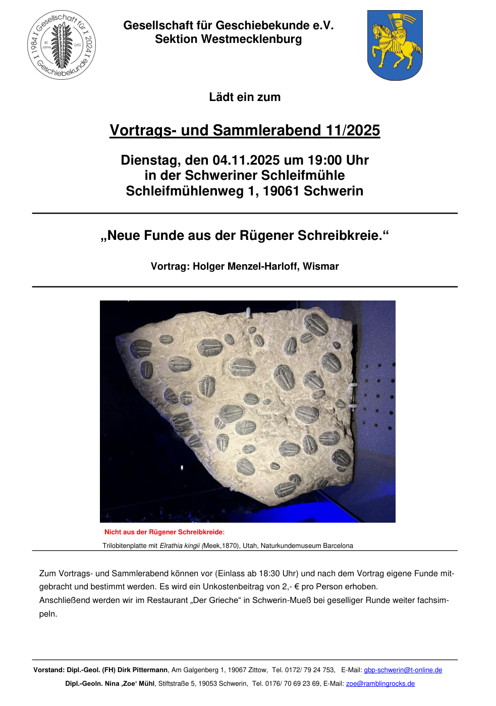 Sektion Westmecklenburg – 04.11.2025 19Uhr Vortrag von Holger Menzel-Harloff: Neue Funde aus der Rügener Schreibkreide