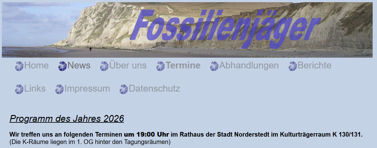 Die Interessengemeinschaft Paläontologie und Geologie Norderstedt gibt ihr diesjähriges Veranstaltungsprogramm auf ihrer Homepage bekannt.